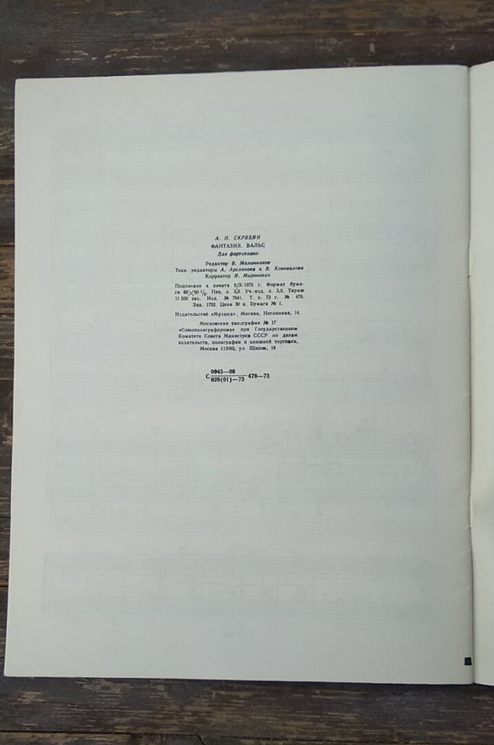 А. Скрябин. Фантазия вальс, для фортепиано - Москва, издательство "Музыка", 1973, 23 с.