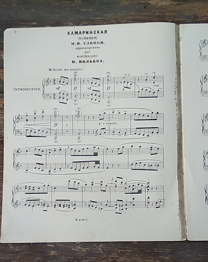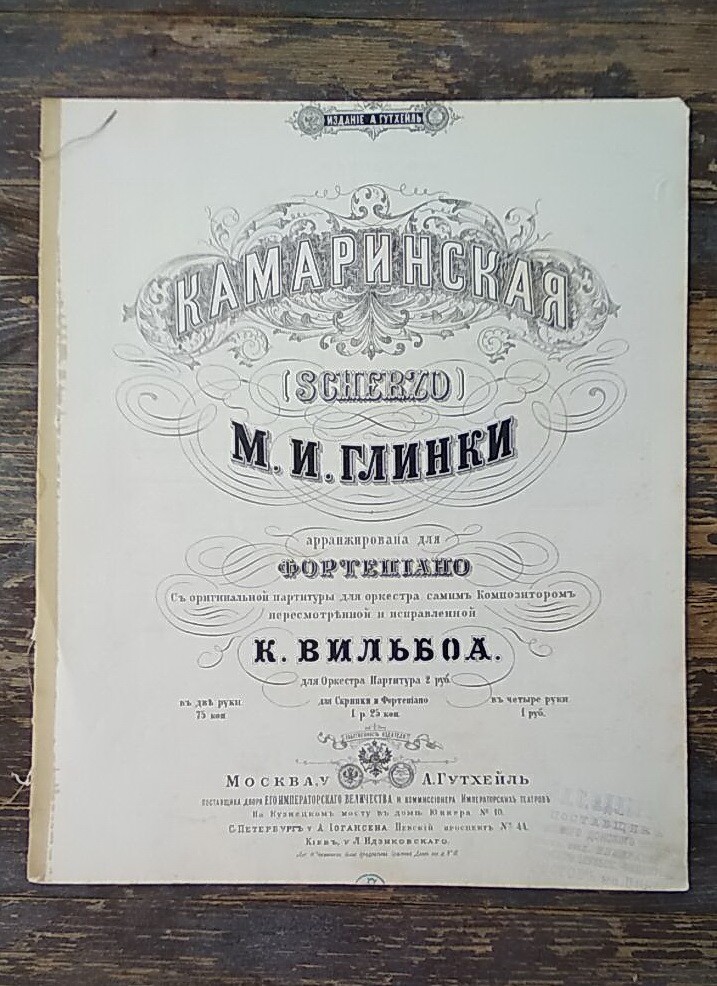 Камаринская, М. И. Глинки. Для фортепиано. - Издание А. Гутхейль. Москва. 11 стр.