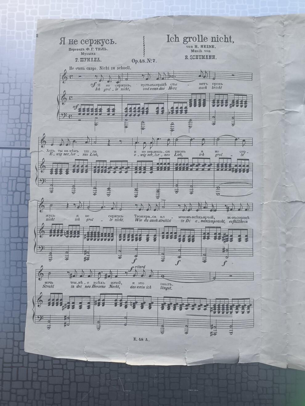 Алла ноты: Шуман, Я не сержусь. Дореволюционное издание.