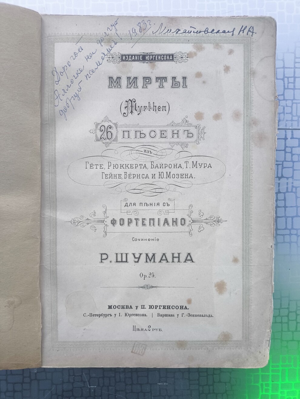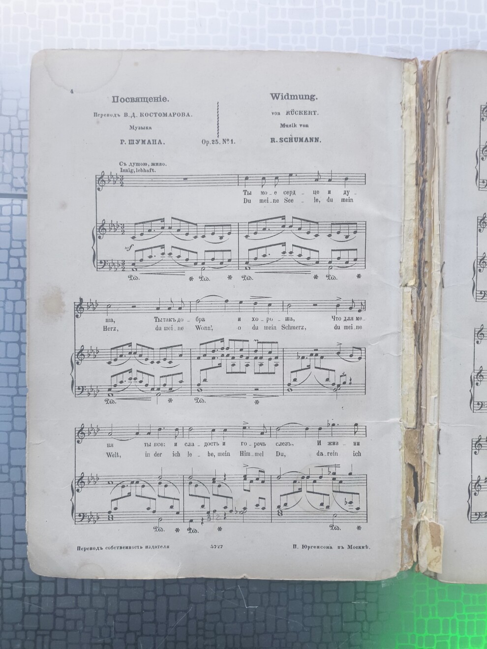 Для фортепиано. 26 песен из Гёте, Рюккерта, Байрона, Т. Мура, Гейне, Бёрнса, Ю. Мозена. 70 страниц. 20*27,5 см. Состояние см на фото.