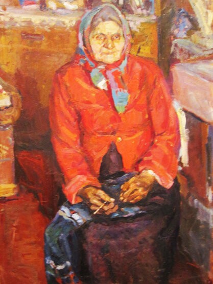 Картон. Масло. 73,5 х 50 см. Портрет матери не датирован, приблизительно 1975 год.