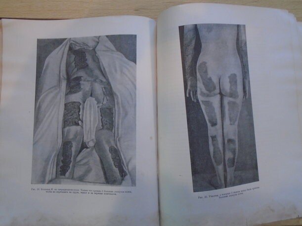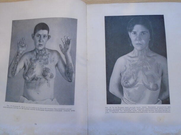 Интересный и редкий атлас- учебник для студентов и врачей хирургов по ожоговой хирургии. Большой формат.300х230мм Страниц 116. Состояние удовлетворительное. Нижняя часть книги значительно истлела. высушена законсервирована.