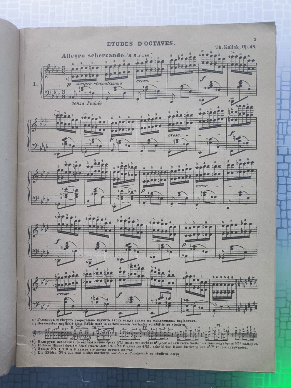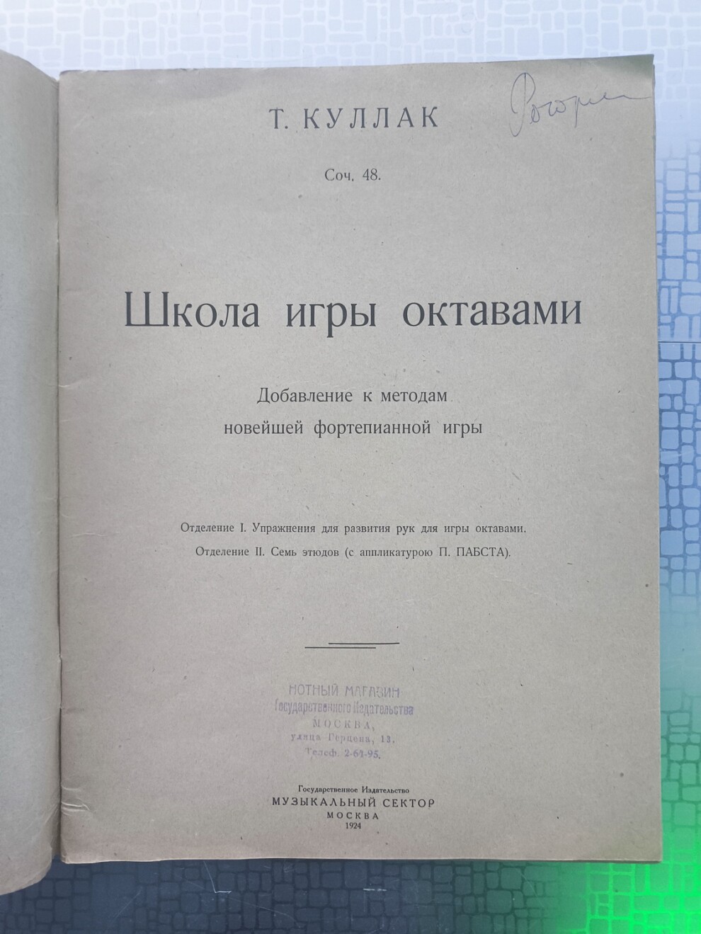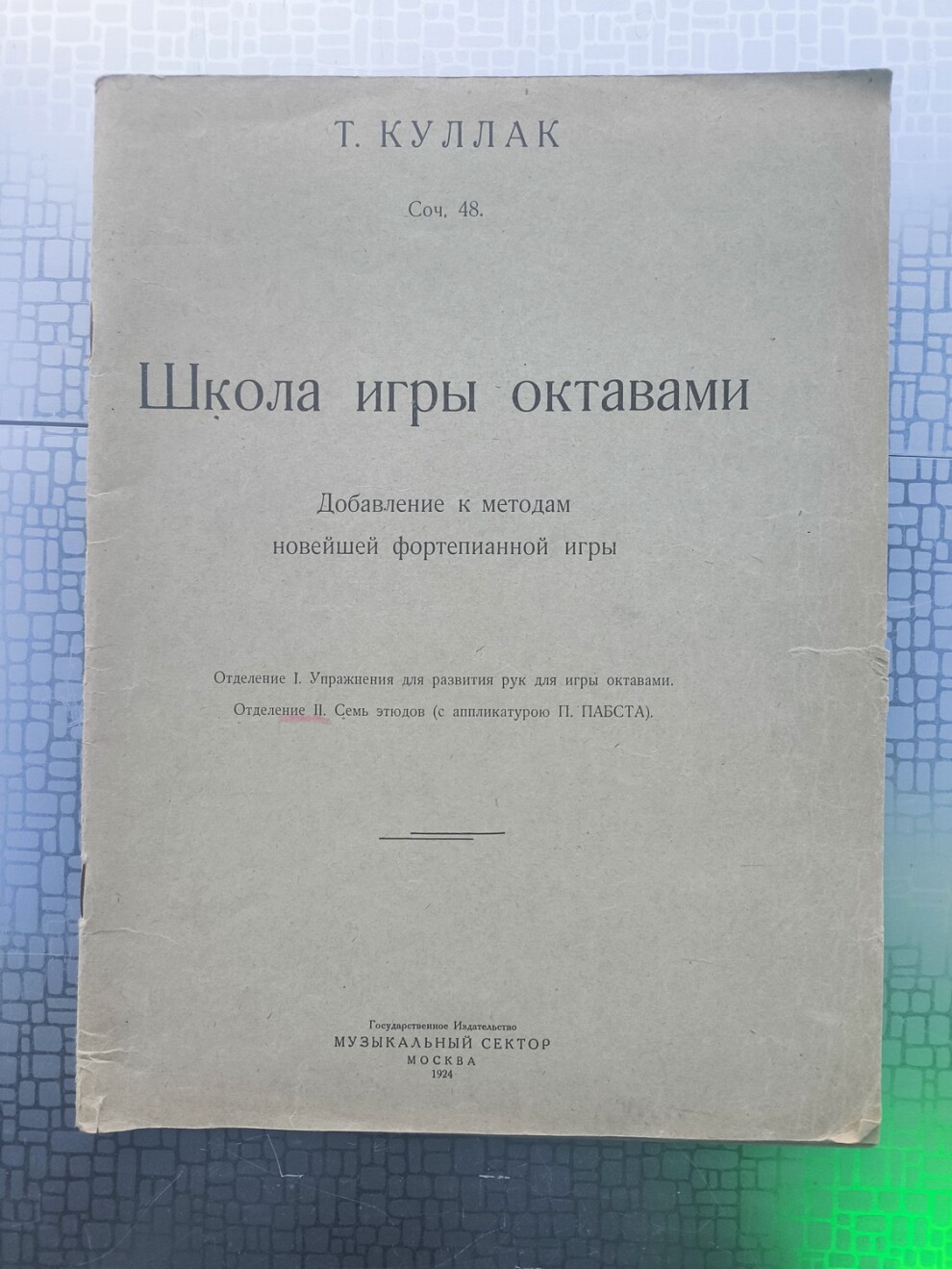 Добавление к методам новейшей фортепианной игры. Отделение 1. Упражнения для развития рук для игры октавами. Отделение 2. Семь этюдов (с аппликатурою П. Пабста). Государственное издательство Музыкальный сектор, 1924. 31 страница. 22,5*30 см. Обложка бумажная. Надрывы.